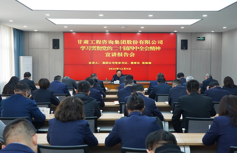 12月9日,甘肅工程咨詢集團召開學(xué)習(xí)貫徹黨的二十屆四中全會精神宣講報告會。集團公司黨委書記、董事長張佩峰作專題宣講報告,圍繞全會重大意義、核心要義及“十四五”發(fā)展成就、“十五五”時期目標任務(wù)等進行了系統(tǒng)闡釋,并結(jié)合集團實際提出貫徹落實的思路舉措。
