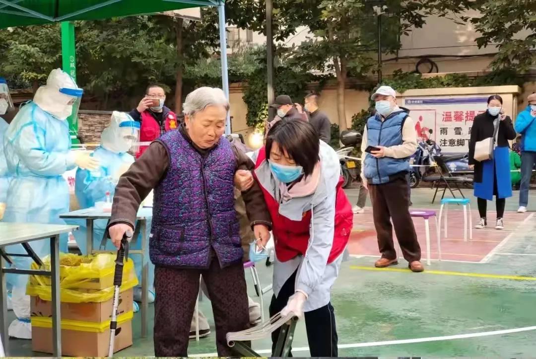號令一出,不到半個(gè)小時(shí)時(shí)間,300多人的志愿隊(duì)伍已組建就緒。當(dāng)天下午,第一批志愿者隊(duì)伍,統(tǒng)一身穿紅馬甲,佩戴口罩,迅速奔赴南關(guān)夜市、伊真大廈、五泉街道、外國語中學(xué)等多個(gè)檢測點(diǎn)開展志愿服務(wù)。而女志愿服務(wù)者則更成為了深秋季節(jié)疫情防控一線最靚麗的一道風(fēng)景?!澳?,請?zhí)嵩绱蜷_微信健康出行碼”“請大家不要扎堆聚集,按照1米線要求,有序排隊(duì)”“請黃碼人員、老人、孕婦和小孩走綠色通道”……一聲聲溫馨提示,一次次貼心攙扶,都是她們最溫情的守護(hù)。
