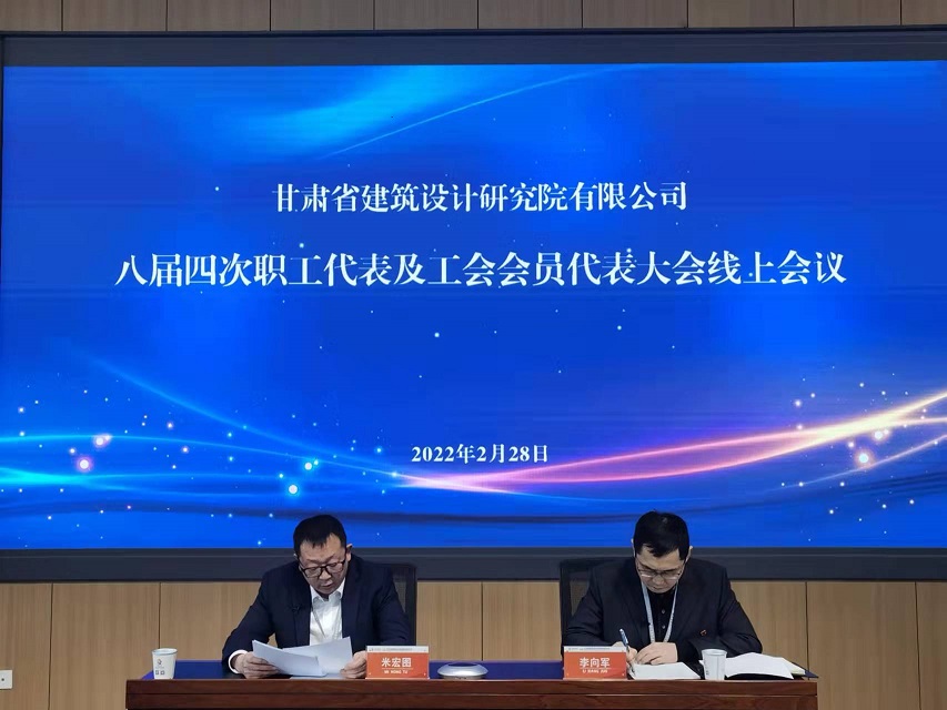 2月28日,甘肅省建筑設(shè)計(jì)研究院有限公司以視頻會(huì)議形式召開(kāi)八屆四次職工代表大會(huì)。董事長(zhǎng)米宏圖作了題為《深化改革創(chuàng)新 聚力提質(zhì)增效 以嶄新業(yè)績(jī)譜寫(xiě)高質(zhì)量發(fā)展新篇章》的工作報(bào)告。建筑設(shè)計(jì)院領(lǐng)導(dǎo)班子成員及職工代表、工會(huì)會(huì)員代表147人分別通過(guò)PC端和移動(dòng)端參加會(huì)議,17名特邀代表列席會(huì)議。會(huì)議由黨委書(shū)記李向軍主持。