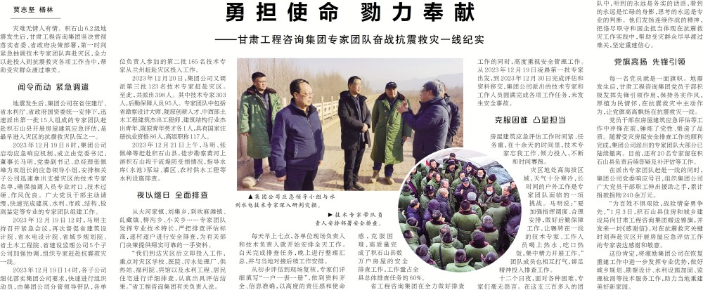 《甘肅日?qǐng)?bào)》刊載甘肅工程咨詢集團(tuán)專家團(tuán)隊(duì)奮戰(zhàn)抗震救災(zāi)一線紀(jì)實(shí)