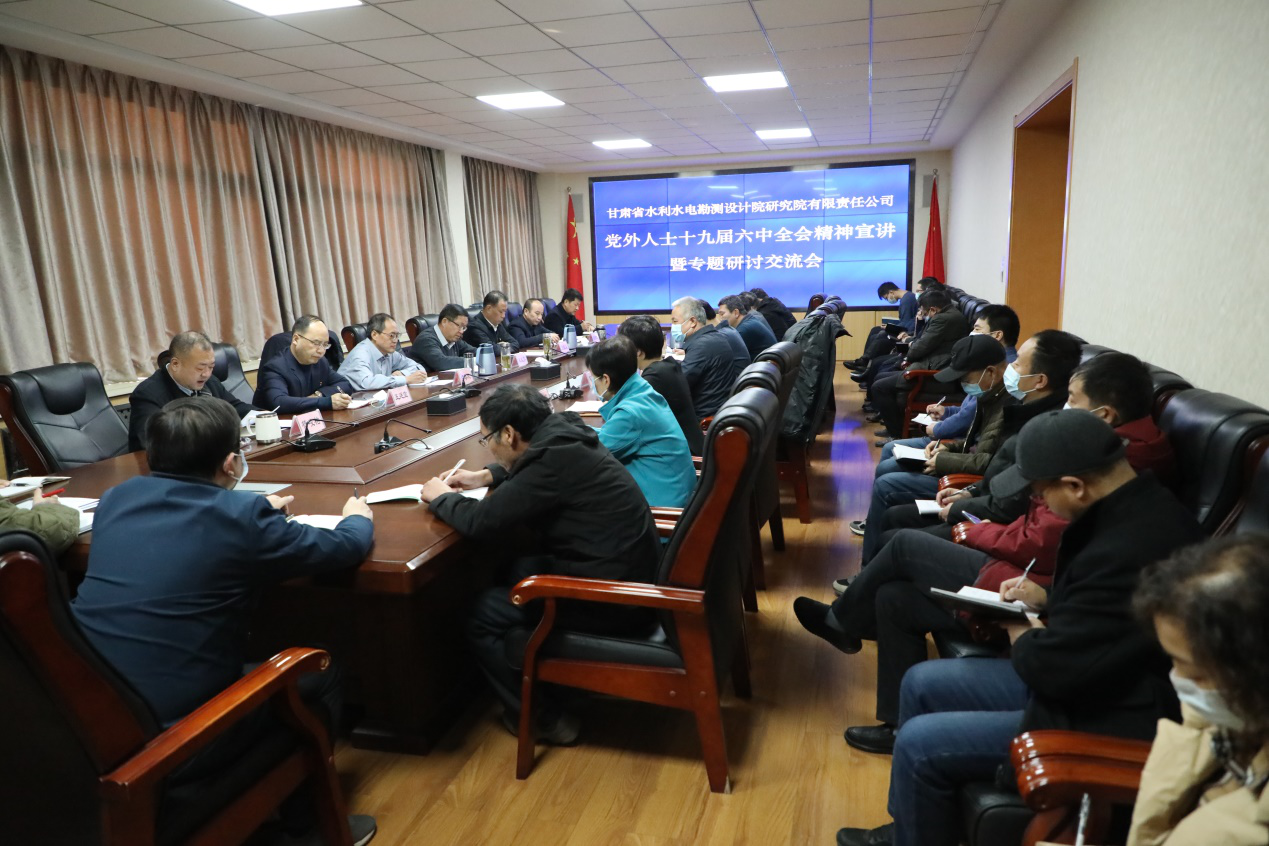 12月13日,水電設(shè)計(jì)院組織黨外人士宣講研討中共十九屆六中全會(huì)精神,九三學(xué)社、民主促進(jìn)會(huì)、無(wú)黨派人士、少數(shù)民族和黨外知識(shí)分子代表共40余人參加。