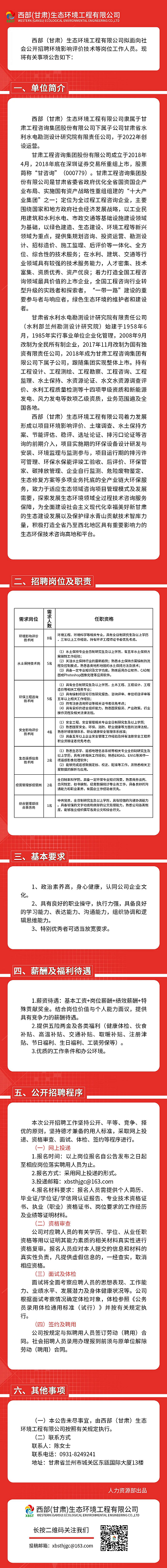 甘肅省水利水電勘測設(shè)計研究院有限責(zé)任公司——西部(甘肅)生態(tài)環(huán)境工程有限公司招聘公告