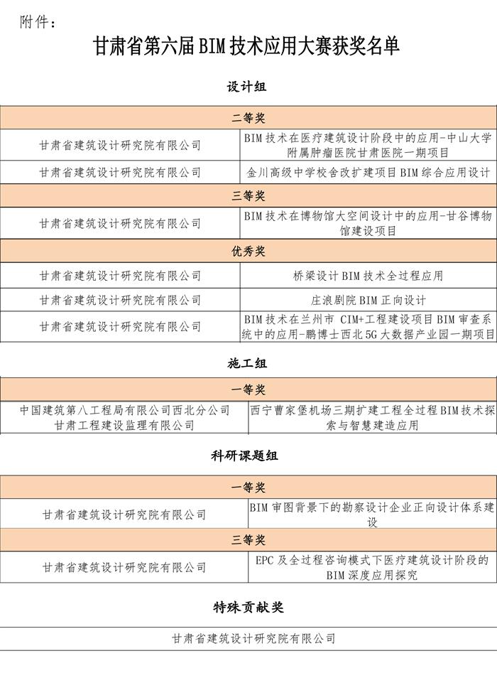 近日,甘肅省第六屆BIM技術(shù)應(yīng)用大賽落下帷幕,省建筑設(shè)計院選送的9項作品,經(jīng)過層層篩選、答辯評審,最終在185個參賽作品中脫穎而出,并分別獲獎。省建筑設(shè)計院榮獲特殊貢獻(xiàn)獎。