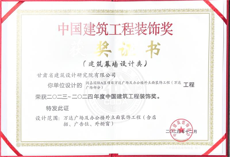 近日,中國建筑裝飾協(xié)會公布了2023-2024年度“中國建筑工程裝飾獎”獲獎名單,省建筑設(shè)計院承擔(dān)設(shè)計的“潤嘉國際A區(qū)項目萬達廣場及辦公樓外立面裝飾工程(萬達廣場部分)”榜上有名。